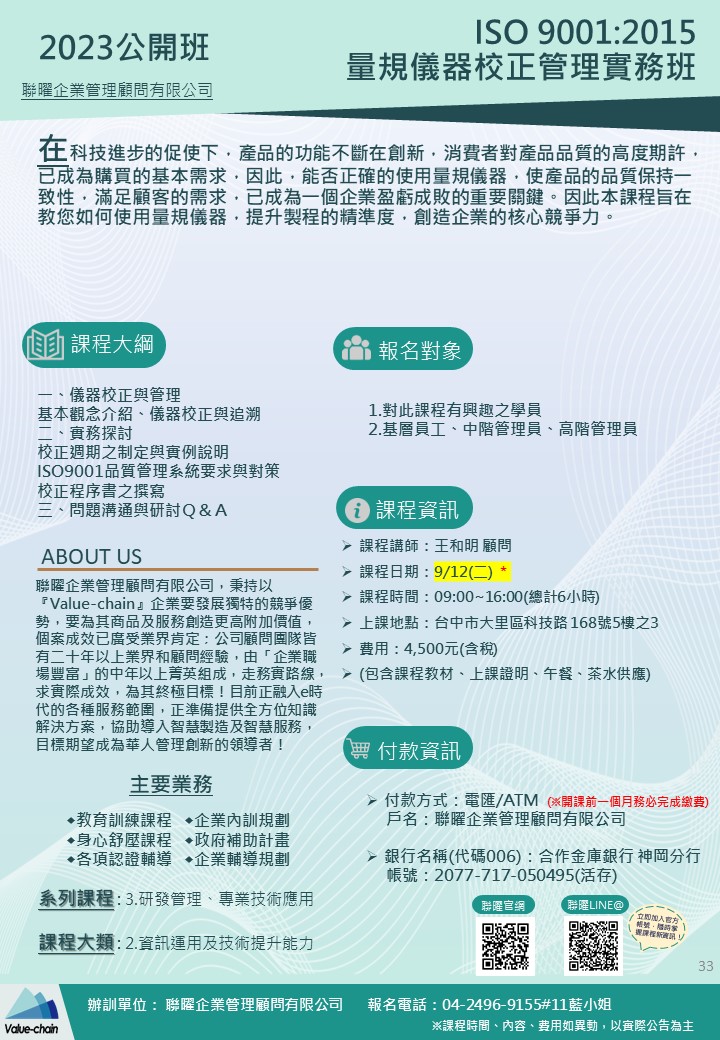 報名中✅ ISO 9001:2015量規儀器校正管理實務班