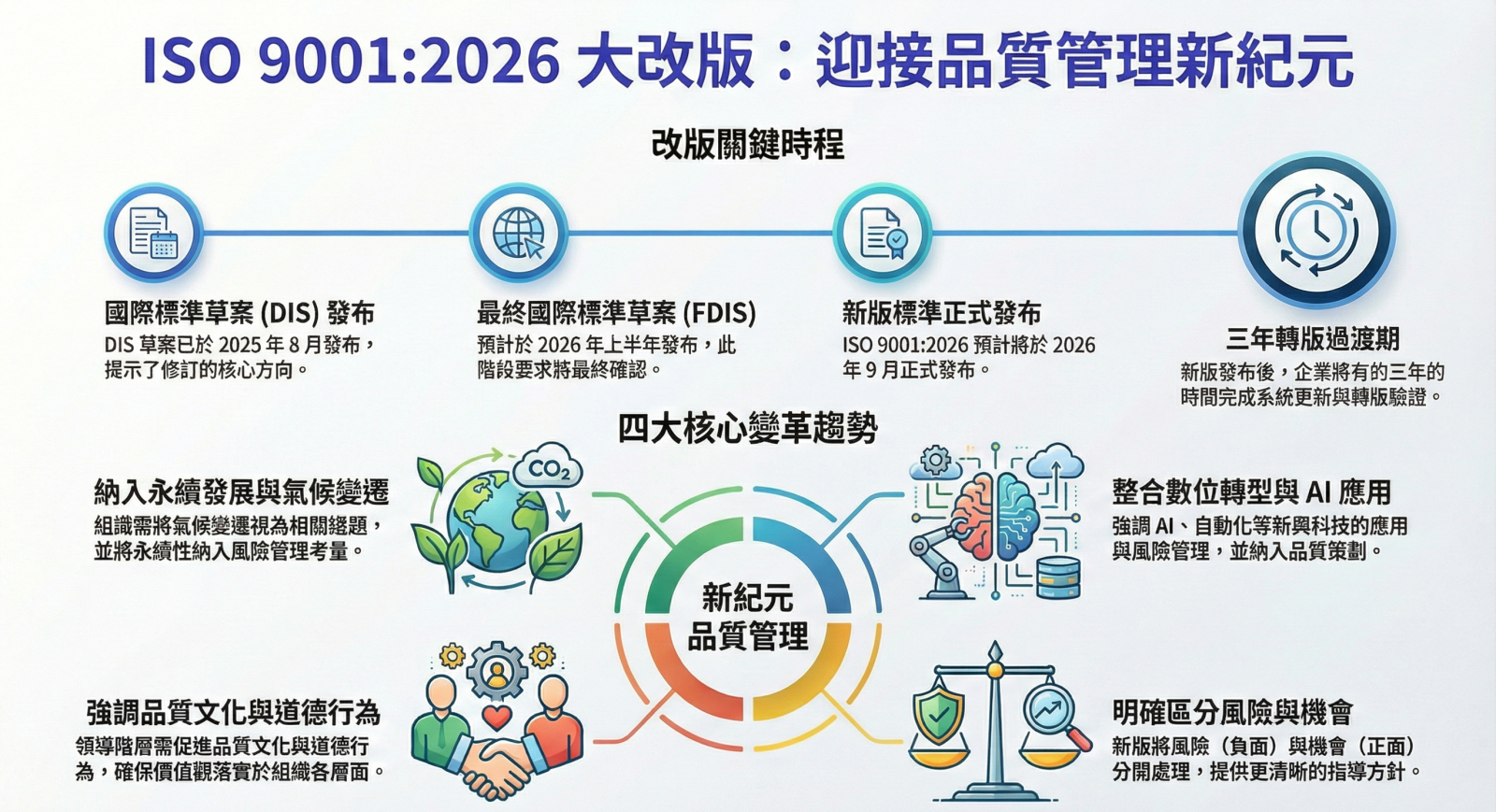 這不僅是一次標準的更新,更是品質管理思維的全面升級。對於台灣的人資主管與經營者而言,提前佈局改版內容,將是提升企業內部治理與國際競爭力的關鍵時刻。