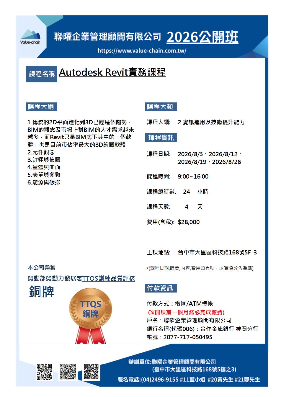 上課時間 2026/8/5、2026/8/12、2026/8/19、2026/8/26