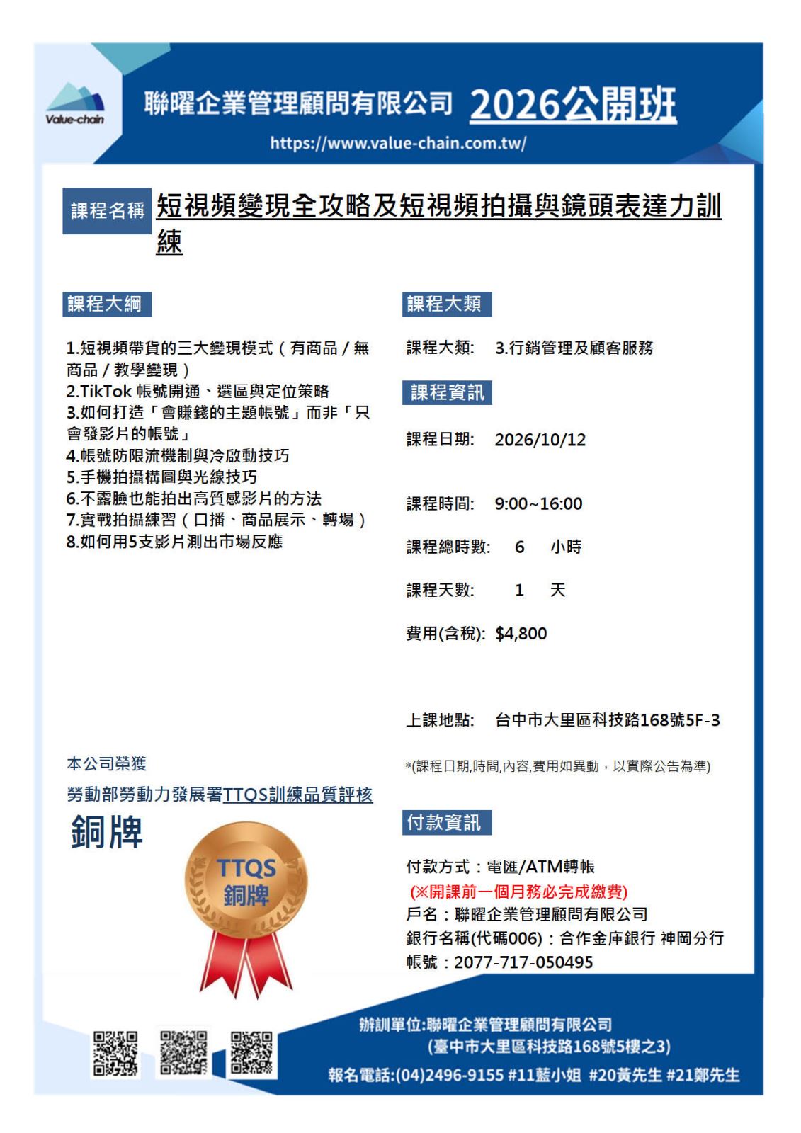課程名稱 短視頻變現全攻略及短視頻拍攝與鏡頭表達力訓練