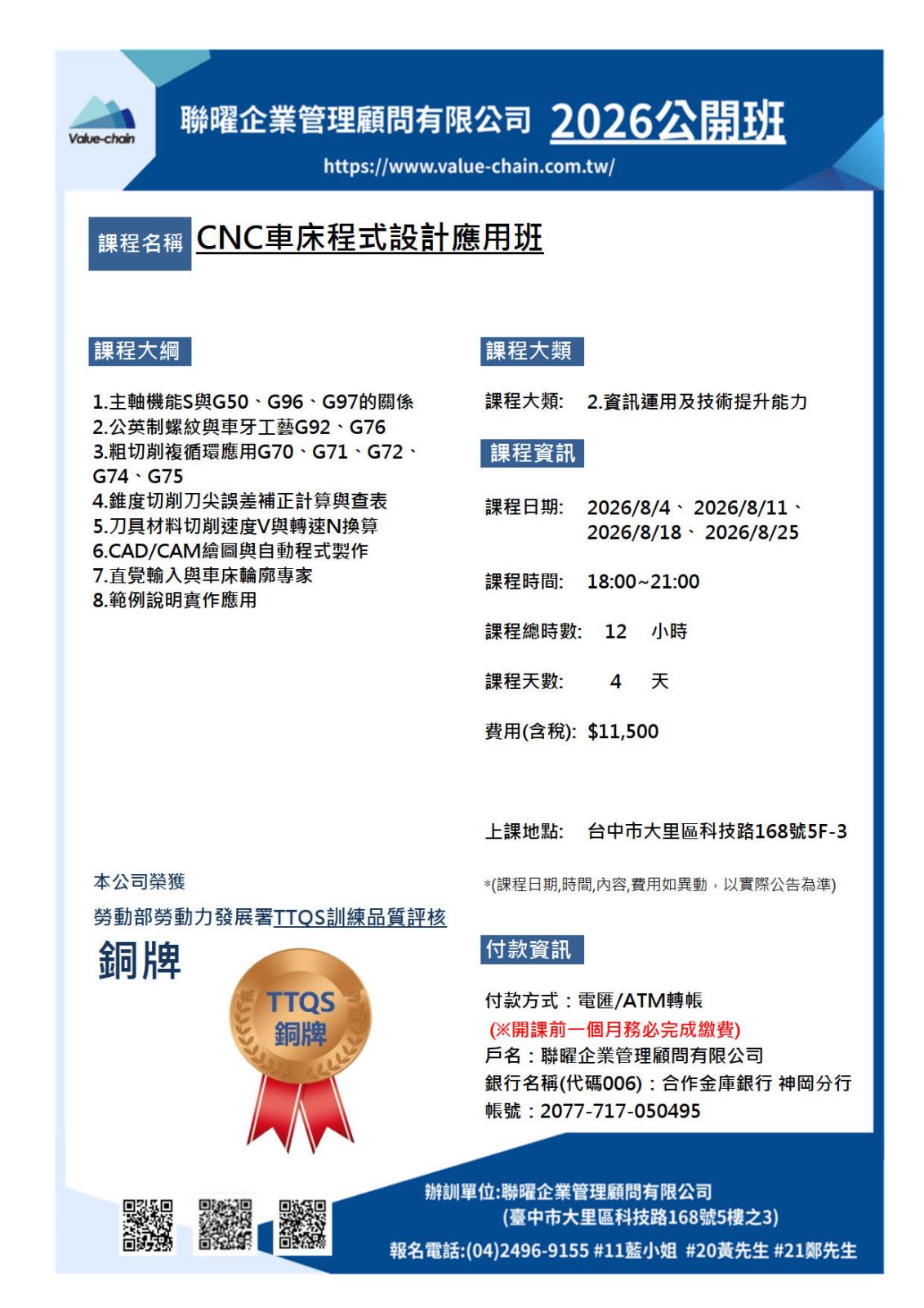 課程名稱 CNC車床程式設計應用班