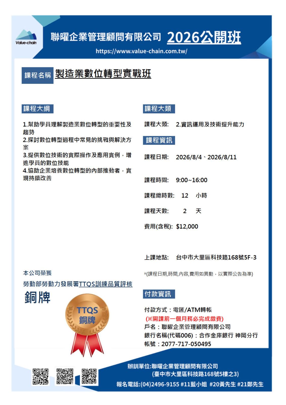 課程名稱 製造業數位轉型實戰班